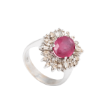 انگشتر یاقوت سرخ کمرنگ | طلا سفید